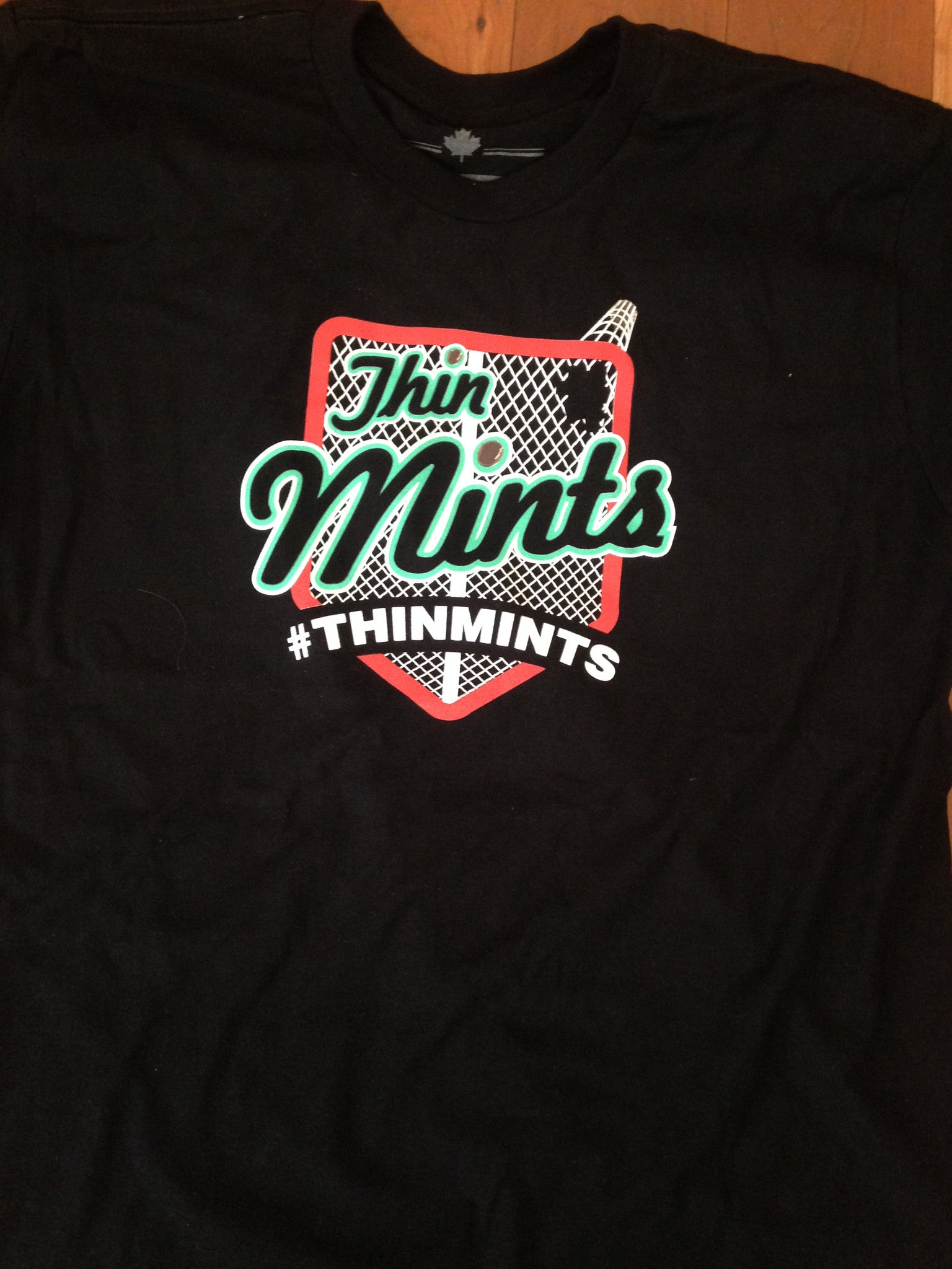 Soft and comfortable Thin Mints logo t-shirt with #cawlidgehawkey hashtag on upper back.